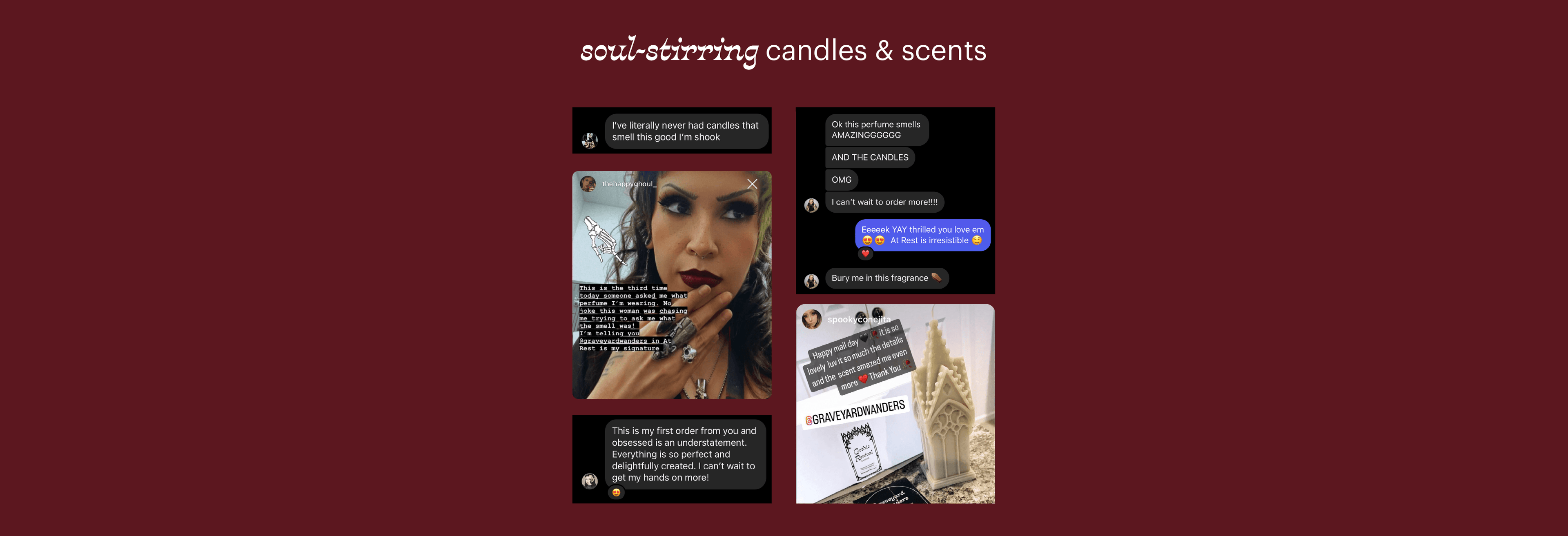 Our candles and perfumes are more than just products—they’re crafted with intention, quality ingredients, and a deep love for everything gothic and nostalgia.