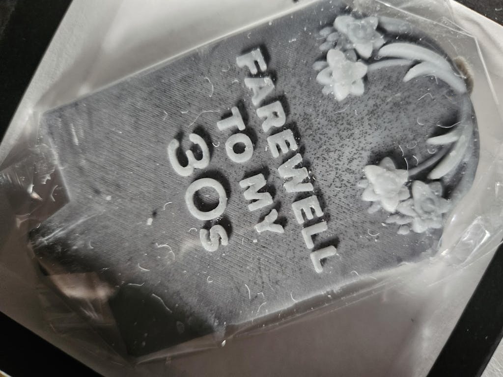 Commemorate the end of your 30s & the start of your 40s with this tombstone candle reminiscent of those found in timeworn graveyards.