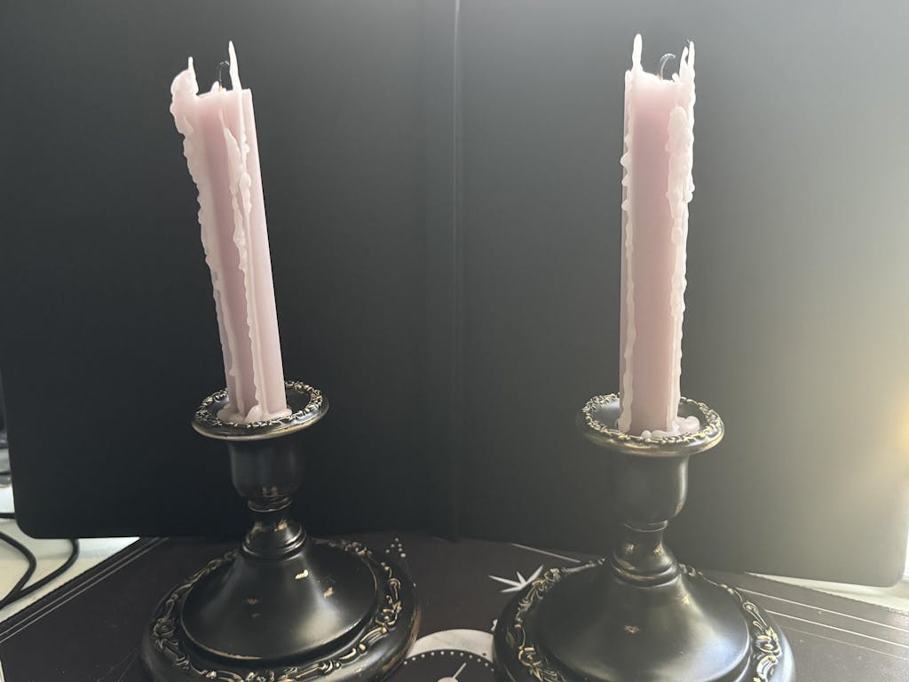 Each set of 3 taper candles are made using our handmade molds & scented with Beloved Bones: reminiscent of a crisp Autumn morning in Salem streets, esoteric boutiques & witches brooms.