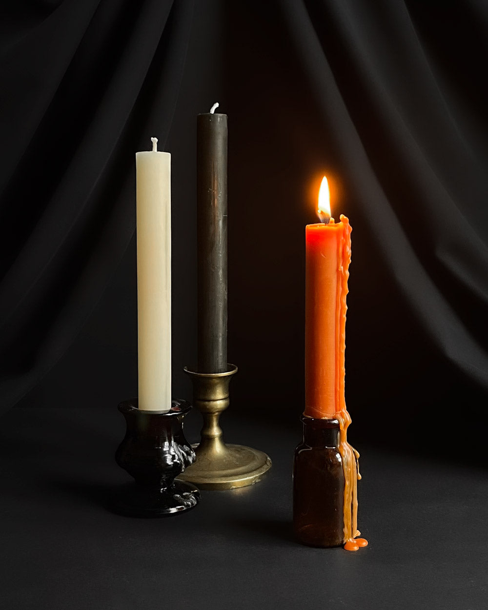 Limited edition set of 3 autumnal colours & scents for the ultimate Halloween taper set.